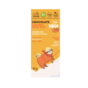 Organska čokolada s karamelom ukusna je bezglutenska varijanta slastice. Spravljena sa šećerom šećerne trske, kakao maslacem, kokosom i napitkom od riže u prahu, zasigurno će se svidjeti mnogim čokoljupcima.