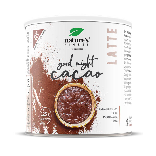 Instant biljni napitak sadrži prah kakaa, ashwagandhe i mace uz dodatak rižinog napitka i cimeta. Odličan je odabir za sve koji uživaju u večernjem ritualu ispijanja opuštajućeg napitka koji će ih umiriti i pomoći da lakše utonu u san.