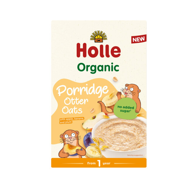 Holle Organic Otter Oats je obrok namijenjen djeci od 1 godine. Instant pahuljice sadrže 100% ekološke sastojke, uključujući zobene pahuljice, te voće poput jabuka, banana i šljiva. Ne sadrži dodane šećere, sol, začine ni aromate; slatkoća dolazi isključivo od prirodnih sastojaka.