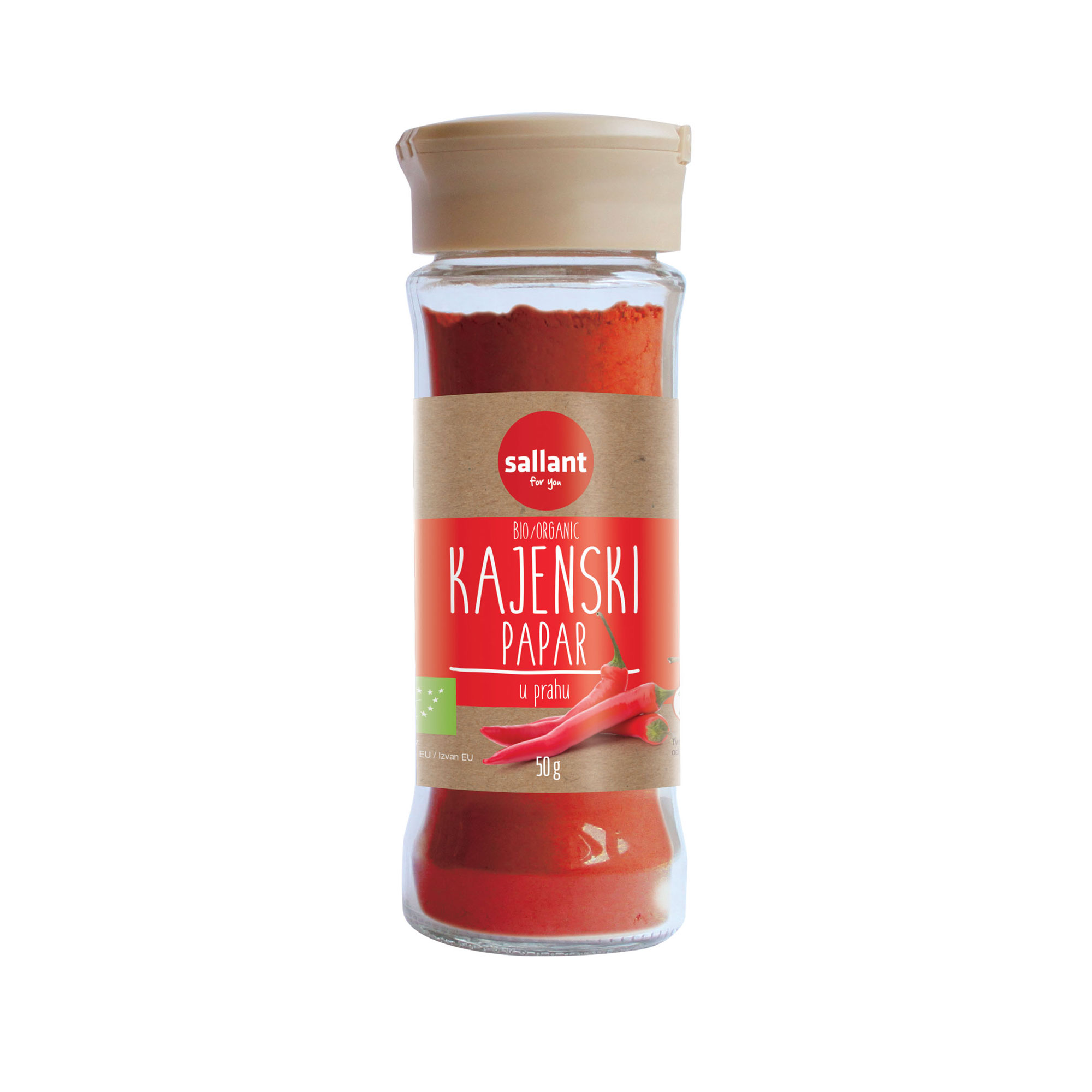 Kajenski papar u prahu poznat je i drag začin svim ljubiteljima ljutih okusa. Ljutkasti okus kajenskog papra savršeno će pasati uz povrće poput patlidžana, krumpira, tikvica, paprika, kukuruza i rajčice te svakako obogatiti jela s rižom, juhe, umake i marinade. Sallant začini nose eko certifikat koji garantira kako tijekom uzgoja u polju nisu bili tretirani pesticidima i gnojeni mineralnim fertilizatorima, a u pripremama za fazu čuvanja nisu izloženi visokim temperaturama niti ionizirajućem zračenju.