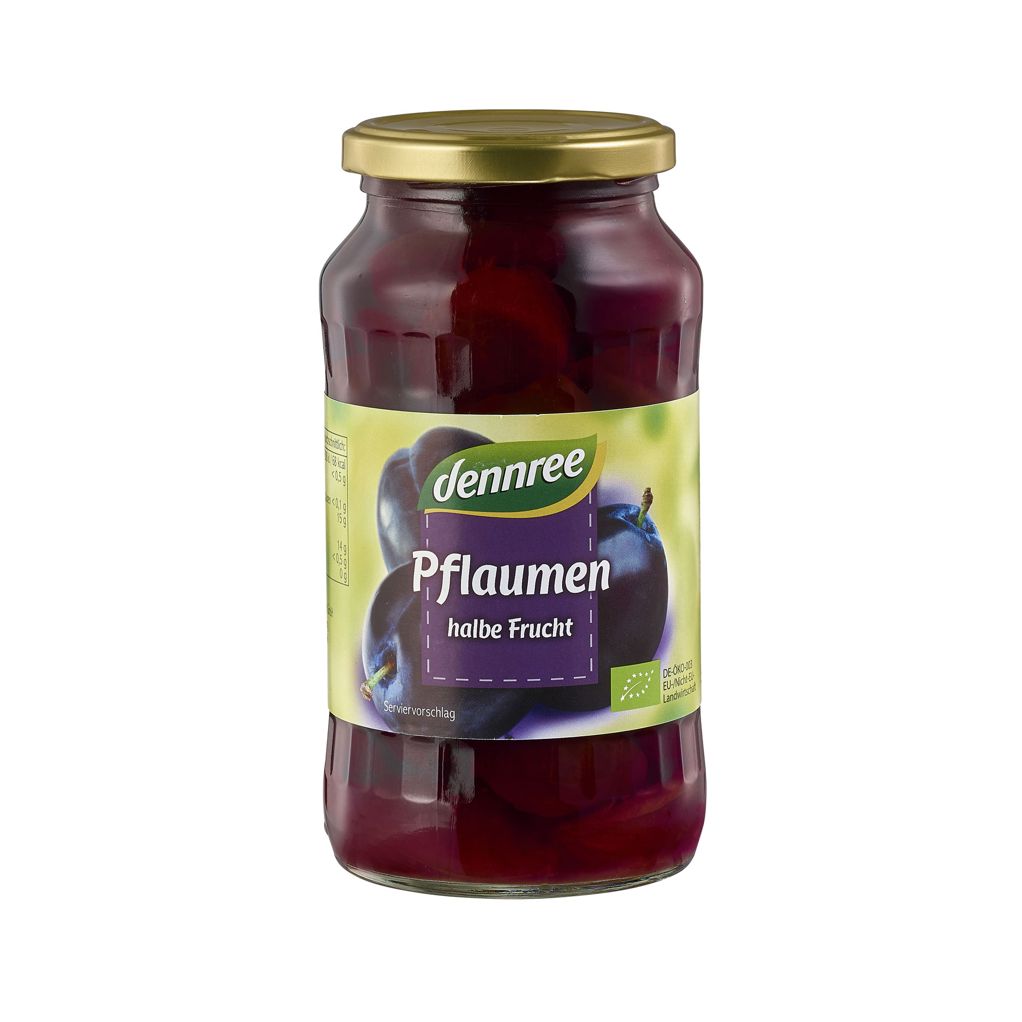 šljiva*, voda, koncentrirani sok od jabuke* 11,7%. *ekološki uzgoj. Neto količina: 540 g. Ocijeđena neto masa: 305 g. Kodni broj: DE-ÖKO -001. Stavlja na tržište RH: Biovega d.o.o., Majstorska 1E, 10000 Zagreb, Hrvatska. Uvjeti čuvanja: čuvati na suhom i hladnom mjestu. Nakon otvaranja čuvati u hladnjaku i konzumirati čim prije. Najbolje upotrijebiti do / LOT broj: otisnuto na ambalaži.