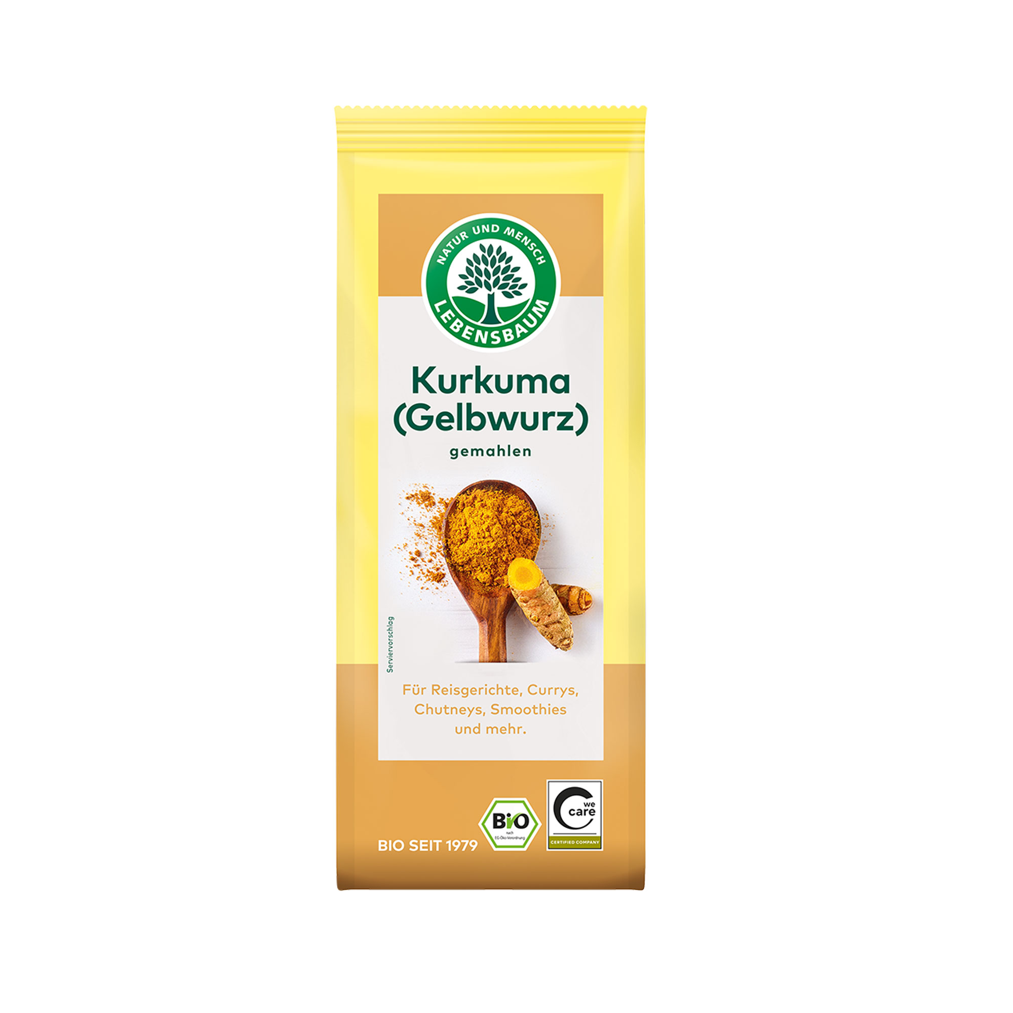 Kurkuma je idealna kao začin umacima, marinadama i jelima od grahorica. Njezina žuta boja korijena ju čini čestim nadomjestkom za skupi šafran, te je jedan od neizostavnih sastojaka indijskog currya. Dobiva se od korijena kurkume (Bot. Curcuma longa) koja potiče iz jugoistočne Azije. Postupak dobivanja ovog jarko žutog, aromatičnog praškastog začina je da se korijen iskopa, opere, sitno nasjecka, osuši i na kraju samelje. Njegova intenzivna žuta boja se koristi za bojanje jela kao što su senf, kruh ili namazi.Iz kontroliranog je uzgoja, vrhunske arome i mirisa. Eko certifikat garantira kako ovaj začin tijekom uzgoja u polju nije bio tretiran pesticidima i gnojen mineralnim fertilizatorima, a u pripremama za fazu čuvanja nije izložen visokim temperaturama i ionizirajućem zračenju. Osim za izradu toplih napitaka i čajeva, pogodan je za začinjavanje brojnih vrsta jela, koja oplemenjuje svojim okusom.