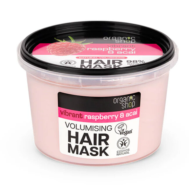 Vitalizirajuća maska za kosu s vitaminima iz voća i acai bobicama. Podarite kosi intenzivan voćni tretman za volumen kose i vidljivu njegu. Malina prirodno sadrži vitamin C zbog čega će kosa biti sjajna i jednostavna za održavanje. Moćne acai bobice pomažu pri jačanju kose s vitaminima A, E i B što je posebno dragocjeno ako želite raskošnu i živahnu kosu. Proizvod ne sadrži parabene, silikone ni SLS. Način upotrebe: nanesite na vlažnu kosu, nježno umasirajte, ostavite dvije do tri minute i isperite.