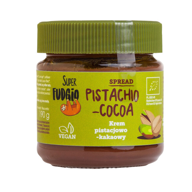 Veganski bezglutenski namaz od pistacija i kakaa bogato je kremast što dodatno intenzivira okus, a rižin slad i šećer od šećerne trske dodatno slade ukusne zalogaje.