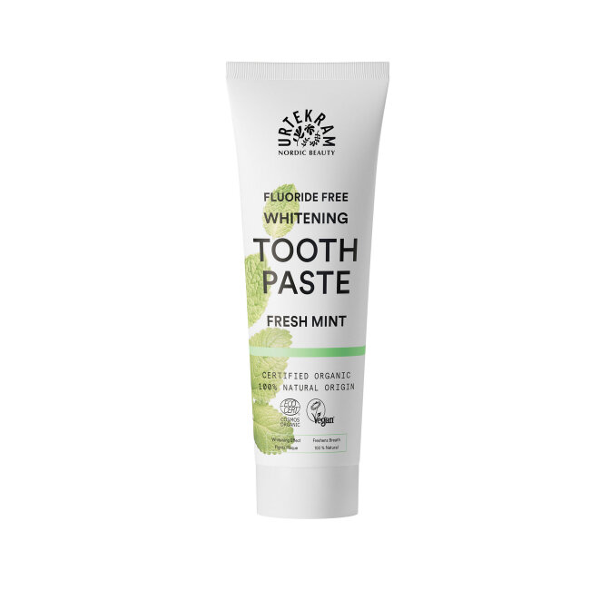 Pasta za zube s mentom za izbjeljivanje zubi. Urtekram zubne paste učinkovito čiste i njeguju zube i zubno meso. Sadrže kredu koja učinkovito čisti i mirisavu smolu koja ima antiseptična svojstva. Sadrže velik udio aloe vere koja štiti desni i pruža im dodatnu njegu. Ne sadrže fluor.