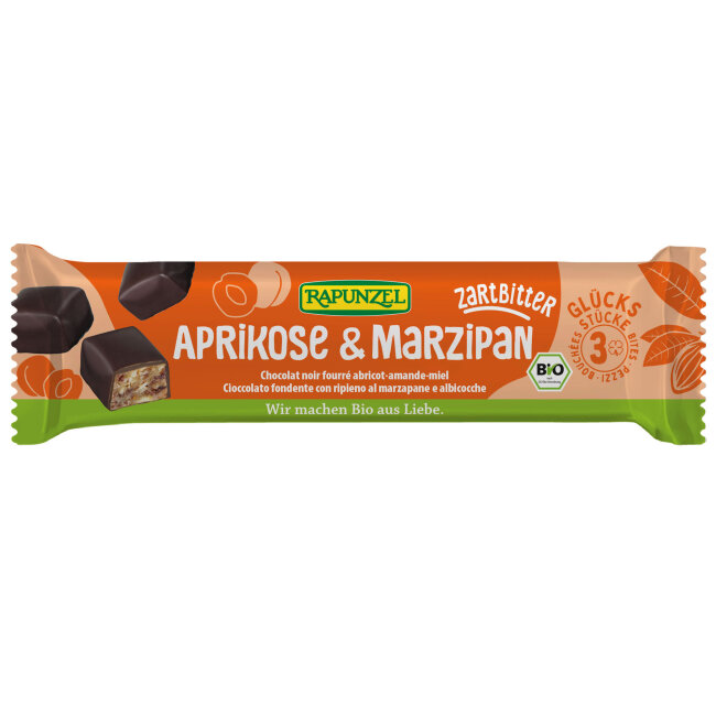 Divna kombinacija aromatičnog marcipana od meda, hrskavih, prženih komadića badema i slatke marelice sve skupa preliveno bogatom tamnom čokoladom daje savršenu pločicu za brzi međuobrok.