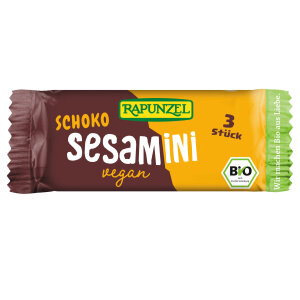 SEZAM* krokant 74% (SEZAM* 50%, rižin slad*, sirovi šećer šećerne trske*, šećer šećerne trske*), preljev od tamne čokolade* 26% (šećer šećerne trske*, kakao masa*, kakao maslac*). *ekološki uzgoj. Preljev od tamne čokolade sadrži najmanje 55% ukupne suhe tvari kakaovih dijelova. Može sadržavati MLIJEKO, KIKIRIKI i ORAŠASTO VOĆE u tragovima. Kodni broj i podrijetlo sirovine: otisnuto kod eko znaka. Stavlja na tržište RH: Biovega d.o.o., Majstorska 1E, 10 000 Zagreb, Hrvatska. Najbolje upotrijebiti do: otisnuto na ambalaži. Ostale prosječne hranjive vrijednosti na 100 g proizvoda: vlakna 5,6 g