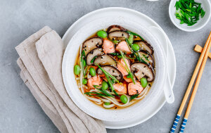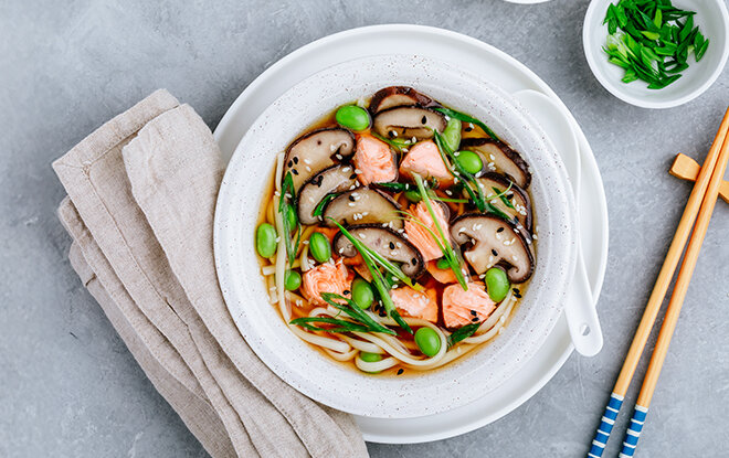 - Umiješaj tahini i shoyu. Posoli po ukusu s himalajskom soli. Ako želiš gušće jelo, dodaj i prethodno skuhane rižine rezance (vermicelli ili udon) i kuhaj još 3–5 minuta.