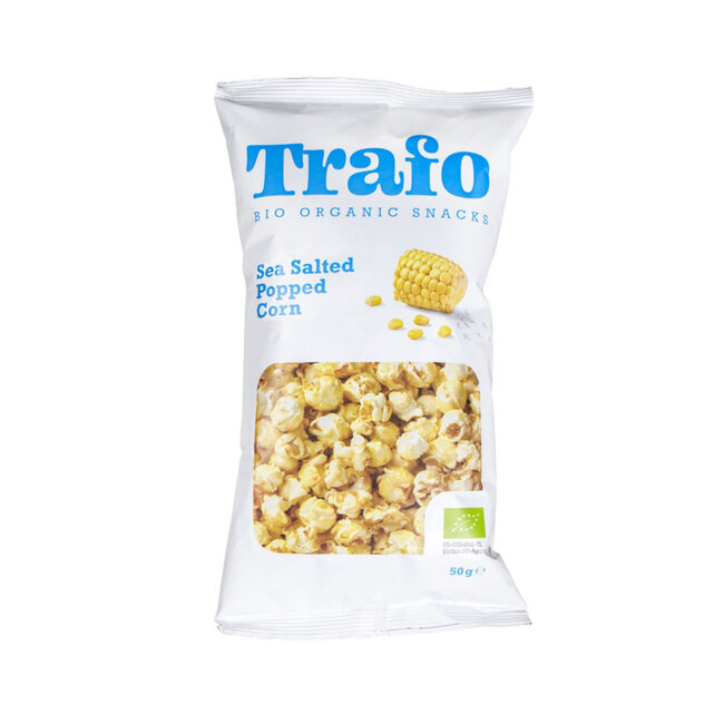 kukuruz* 75%, suncokretovo ulje*, morska sol. *ekološki uzgoj. Kodni broj i podrijetlo sirovine: otisnuto kod eko znaka. Stavlja na tržište RH: Biovega d.o.o., Majstorska 1E, 10000 Zagreb, Hrvatska. Najbolje upotrijebiti do / LOT broj: otisnuto na ambalaži. Uvjeti čuvanja: čuvati na suhom mjestu. Nakon otvaranja odmah konzumirati. Ostale prosječne hranjive vrijednosti na 100 g proizvoda: vlakna 5,8 g