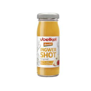 Shot s đumbirom, jabukom i limunom iz biodinamičkog uzgoja obogaćen vitaminom C sadržanim u aceroli iz ekološkog uzgoja. Bez dodanog je šećera i pogodan za vegane.