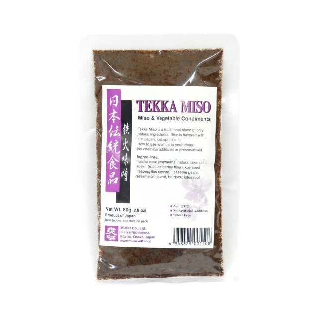 hatcho miso (SOJA, kosen (brašno od prženog JEČMA), enzim ekstrahiran iz kvasca Aspergillus Oryzae, krema od SEZAMA,