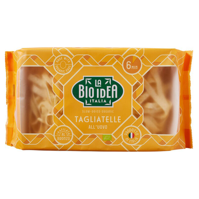 Ukusne tagliatelle, napravljene s jajima koja daju jedinstven okus. Tjesteninu La Bio Idea proizvodi Fattoria Barbagallo, obiteljska tvrtka osnovana 1911. godine na Siciliji. Barbagallovi već gotovo 100 godina tradicionalnim metodama prave najukusniju talijansku tjesteninu od najbolje durum pšenice sa Sicilije.