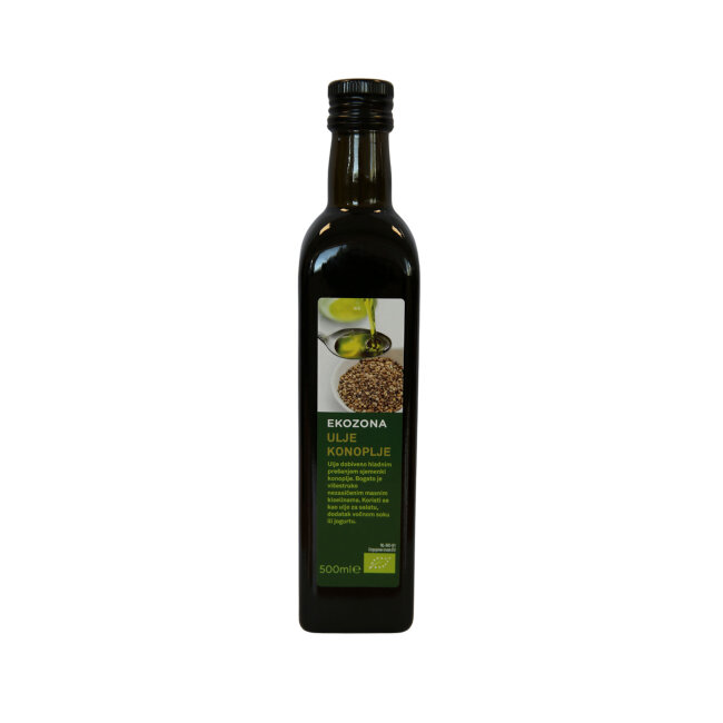 Hladno prešano ulje sjemenki konoplje iz kontroliranog organskog uzgoja. Ne podnosi zagrijavanje i stoga je nužno koristiti ga isključivo za gotova jela, hladne salate, tjestenine, jogurte, smoothieje i slično.Nije namjenjeno za prženje i pečenje.