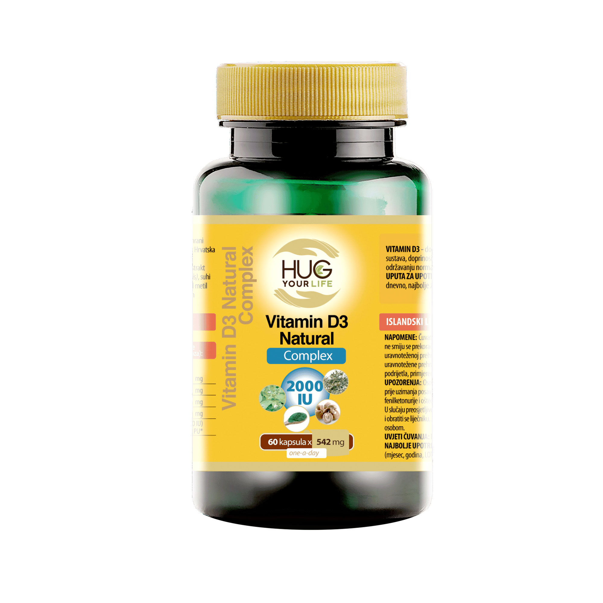 Vitamin D3 Natural Complex je dodatak prehrani koji se uz vitamin D3 (kolekalciferol) bazira i na kombinaciji 4 djelatnih tvari prirodnog porijekla, u visokoj dnevnoj dozi od čak 2000 IU (50 µg = 1000% PU).